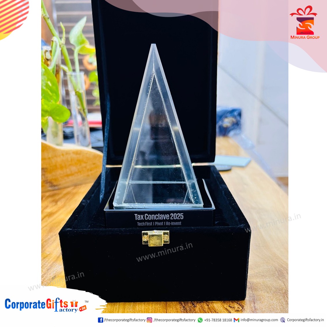 Custom Pyramid-Shaped Acrylic Memento for Corporate Conclave