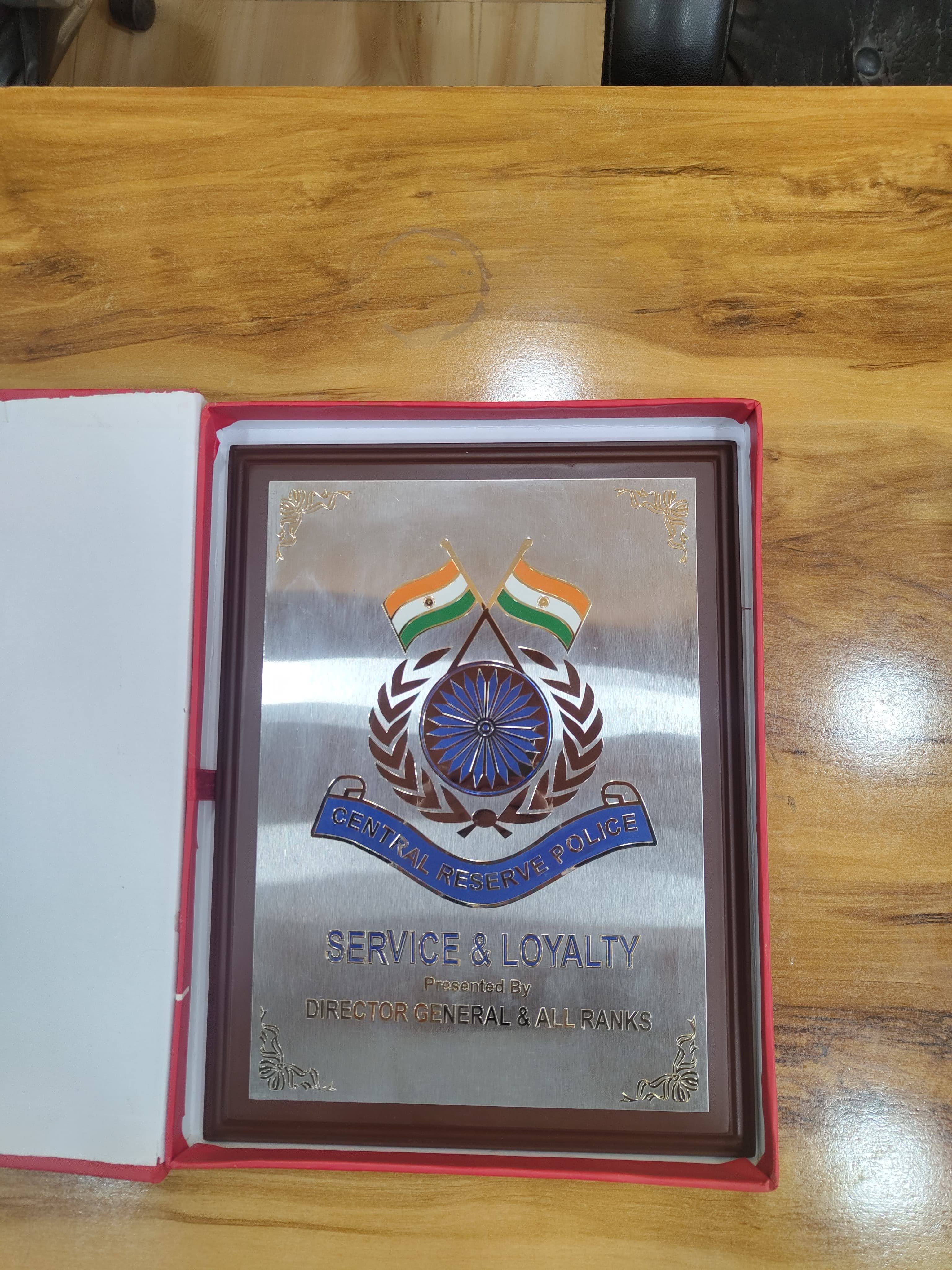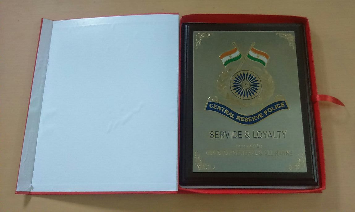 This is a masterpiece created for armed forces for their felicitation and other ceremonies. The quality is unmatched and special crafted gold and chrome-plated metal embossed logos and write-ups gives premium look to the memento.