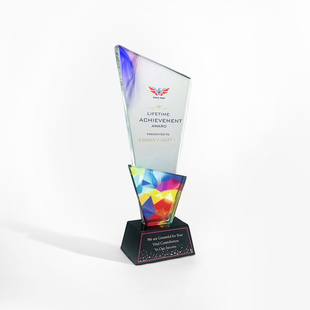 crafted with premium-grade crystal glass for a luxurious and elegant finish. Its tall and sleek design makes it ideal for corporate award ceremonies, employee recognition events, academic honors, sports achievements, and appreciation gifts.