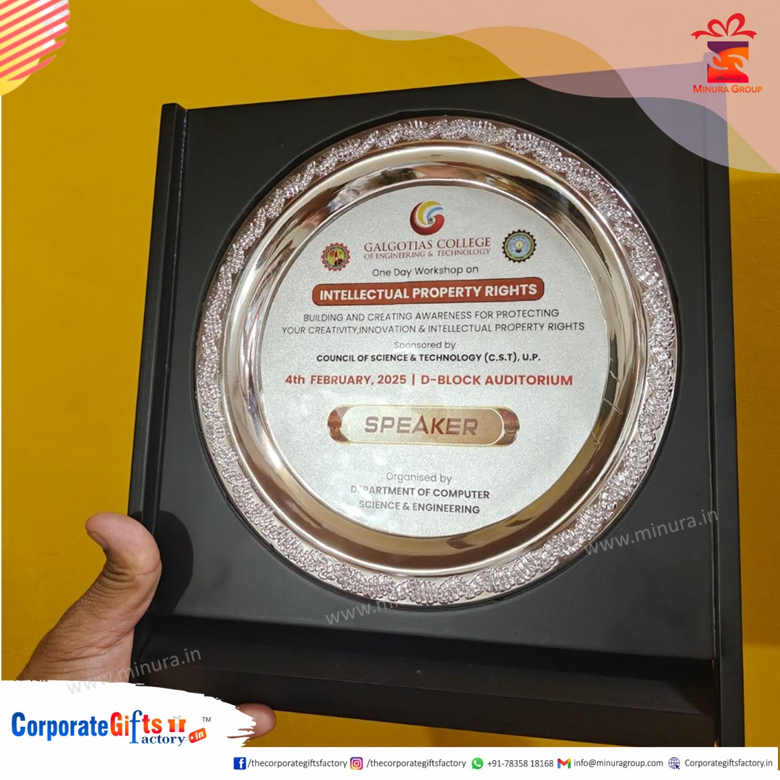 We specialize in manufacturing premium Wooden Flap Mementos for colleges, universities, institutes, and academic events. This model was recently produced for Galgotiyas College for their academic award ceremony.