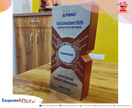 Project: Custom Metal & Wooden Corporate Trophy for KPMG – Tax Conclave 2025