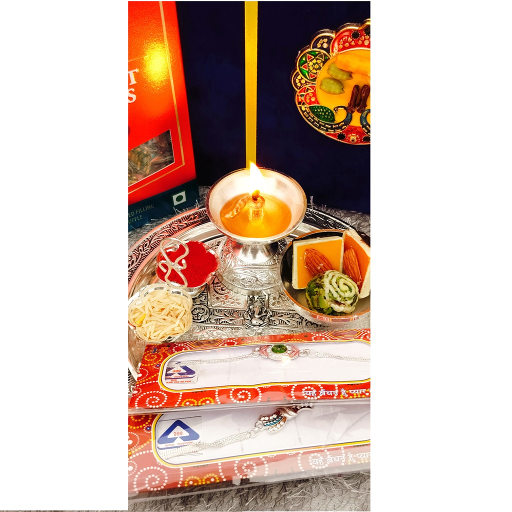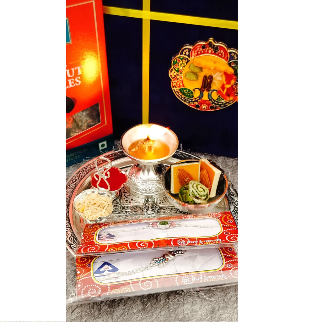 Comes with roli chawal pack, ready for Rakhi rituals