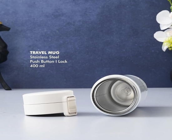 Enjoy your coffee or tea at the perfect temperature with this 400ml stainless steel insulated coffee tumbler. Designed with a smart push & lock button lid, it ensures spill-free drinking and easy one-hand operation, making it ideal for travel, office, and outdoor use. The double-wall insulation keeps beverages hot or cold for hours, while the sleek stainless steel body adds style and durability.