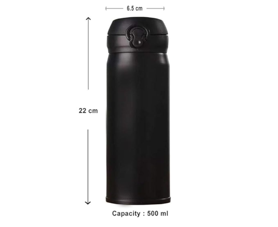 Stay refreshed in style with this insulated stainless steel black bottle, designed to keep your beverages hot or cold for long hours. With a sleek matte black finish, this bottle is both functional and fashionable, making it perfect for office, gym, school, and travel.