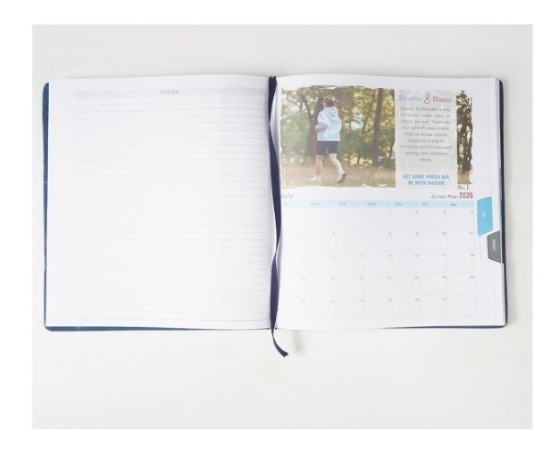 Design: Embossed “Healthy and Happy” theme cover for a motivational touch.