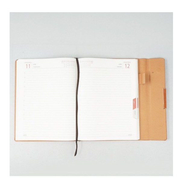 Stay ahead of your schedule with the Premium A5 Double Planner Diary, crafted in Nescafe Natural Soft PU leather with a stylish Magnet Flap closure. Designed for professionals who require detailed planning, this diary offers double planner sections for better organization.