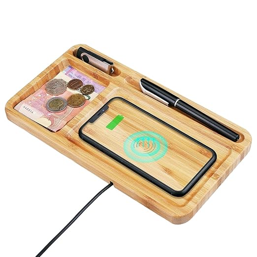 The 15W Wireless Charging Station with Organizer Pad is a multifunctional desk accessory designed to keep your workspace tidy while powering your devices. Featuring a fast wireless charging pad along with an organizer tray, it’s the perfect blend of technology and utility for modern homes and offices.