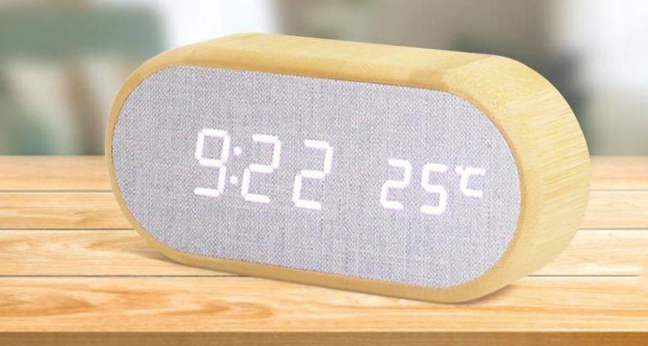 Wooden Alarm Clock with USB Wireless Charging, Alarm Clock with LED Digital Display IMP3IMK.1600.9032-1-2203