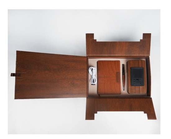 3 in 1 Gift Set Including A6 Notebook, Wooden Desktop Calender Clock, Pen IMPMDVJO.2600.V915