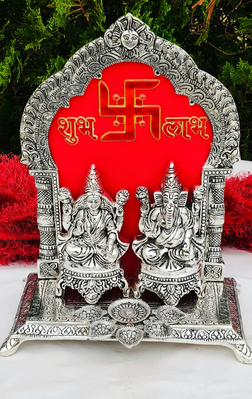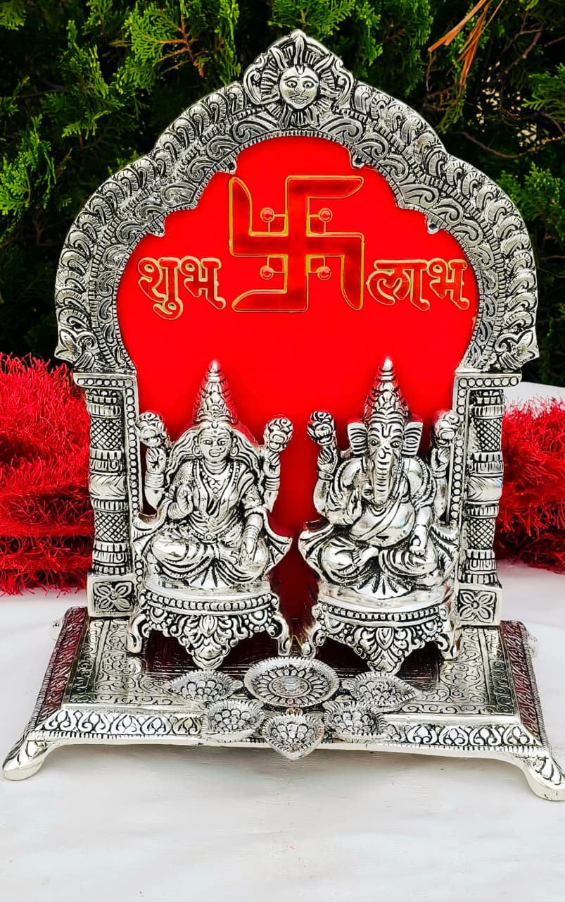 This Antique German Silver Laxmi Ganesh Idol is beautifully crafted with intricate detailing, featuring Goddess Laxmi and Lord Ganesha seated on a Singhasan. Designed with a Panch Deepak (five diya holders), it enhances the divine aura of any puja room, temple, or festive décor. With a large size of 12 inches length and 10 inches width, this idol is a perfect centerpiece for religious ceremonies, Diwali puja, or gifting. Key Features: Antique German Silver Laxmi Ganesh Idol with Singhasan Includes Panch Deepak (five diya holders) Size: Length – 12 inches, Width – 10 inches Elegant design with antique silver finish Perfect for temples, home décor, Diwali puja, and gifting Antique German Silver Laxmi Ganesh Idol, Big Size Laxmi Ganesh Idol, German Silver Ganesh Laxmi Idol with Panch Deepak, Laxmi Ganesh Idol with Diya Holder, Antique Silver Finish Laxmi Ganesh Idol, German Silver Idol for Puja, Laxmi Ganesh Idol for Diwali, German Silver Temple Idol, Panch Deepak Laxmi Ganesh Idol, Decorative German Silver Idol, German Silver Singhasan Idol, Traditional Laxmi Ganesh Idol Gift, Antique German Silver Home Temple Idol