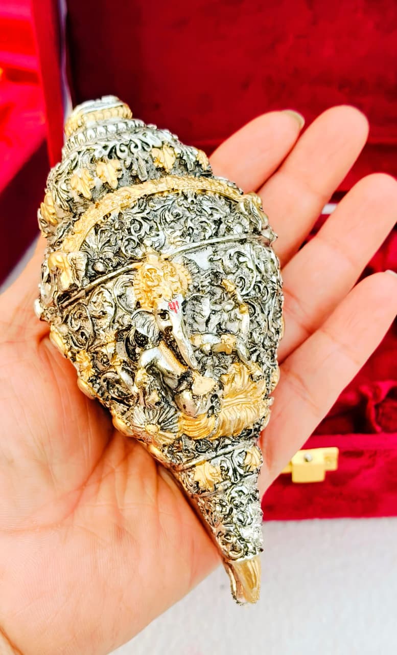 Antique German Silver Vinayak Shankh With Resin Base GRP2GSPD.1750.GS17