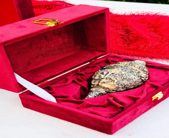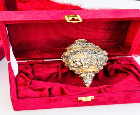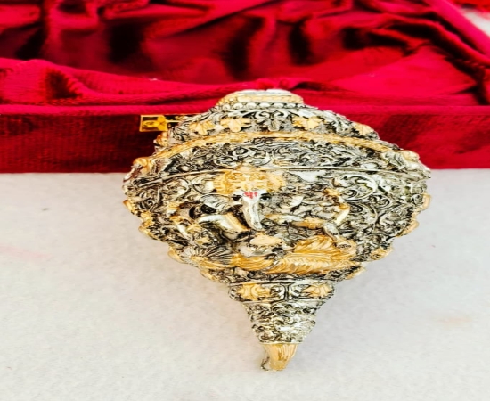 This Antique German Silver Vinayak Shankh with resin base is beautifully designed with elegant gold work, making it a divine and decorative piece for home temples and puja rituals. With a size of 5.5 inches, it comes in a premium gift box pack, making it a perfect choice for festive gifting, housewarming, or religious ceremonies. The antique silver finish adds a touch of tradition and spirituality, making it a valuable addition to any puja décor. Antique German Silver Vinayak Shankh, German Silver Shankh with Resin Base, Vinayak Shankh with Gold Work, Antique Silver Finish Puja Shankh, Premium Gift Box Shankh, German Silver Decorative Shankh, Religious Vinayak Shankh for Puja, German Silver Temple Shankh, Antique Silver Shankh for Home Décor, German Silver Shankh for Gifting, Traditional Vinayak Shankh Idol, Antique German Silver Spiritual Shankh, Premium German Silver Vinayak Gift, Decorative German Silver Puja Shankh, Antique German Silver Housewarming Gift Key Features: Antique German Silver Vinayak Shankh with resin base Designed with intricate gold work for an elegant look Size: 5.5 inches Comes with premium gift box packing Ideal for puja rituals, temple décor, housewarming, and gifting
