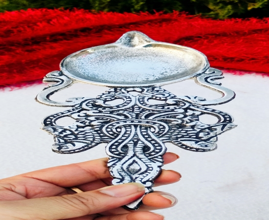 This German Silver Aarthi Stand makes a wonderful addition to your pooja essentials and is also a thoughtful gift for Diwali, weddings, anniversaries, and housewarming ceremonies.