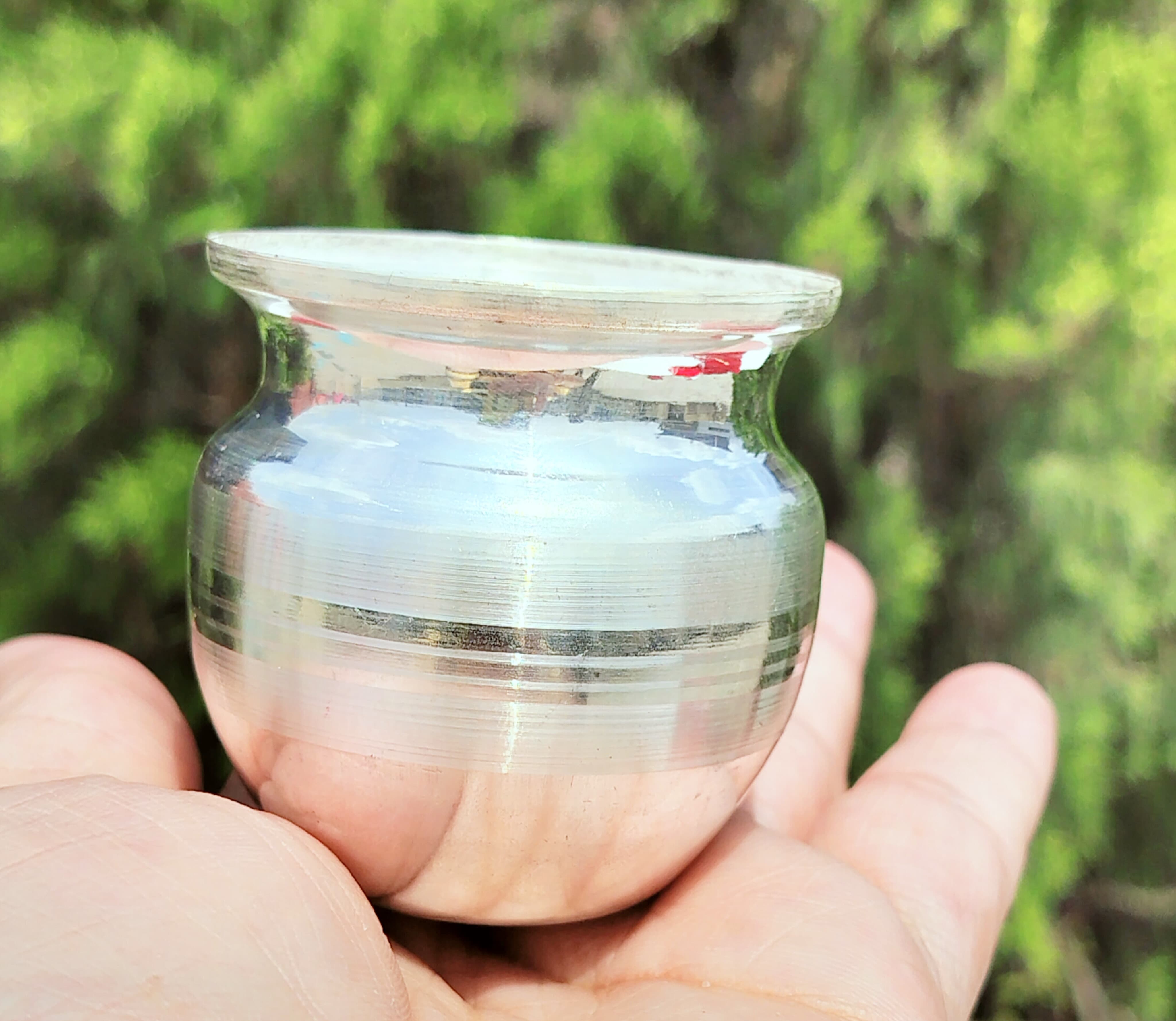 Made with premium-quality German silver, the Kalash is lightweight, durable, and washable, making it suitable for daily pooja use as well as for festive occasions. Its compact size of 2.5 inches in height makes it ideal for personal use or as a thoughtful return gift for guests.