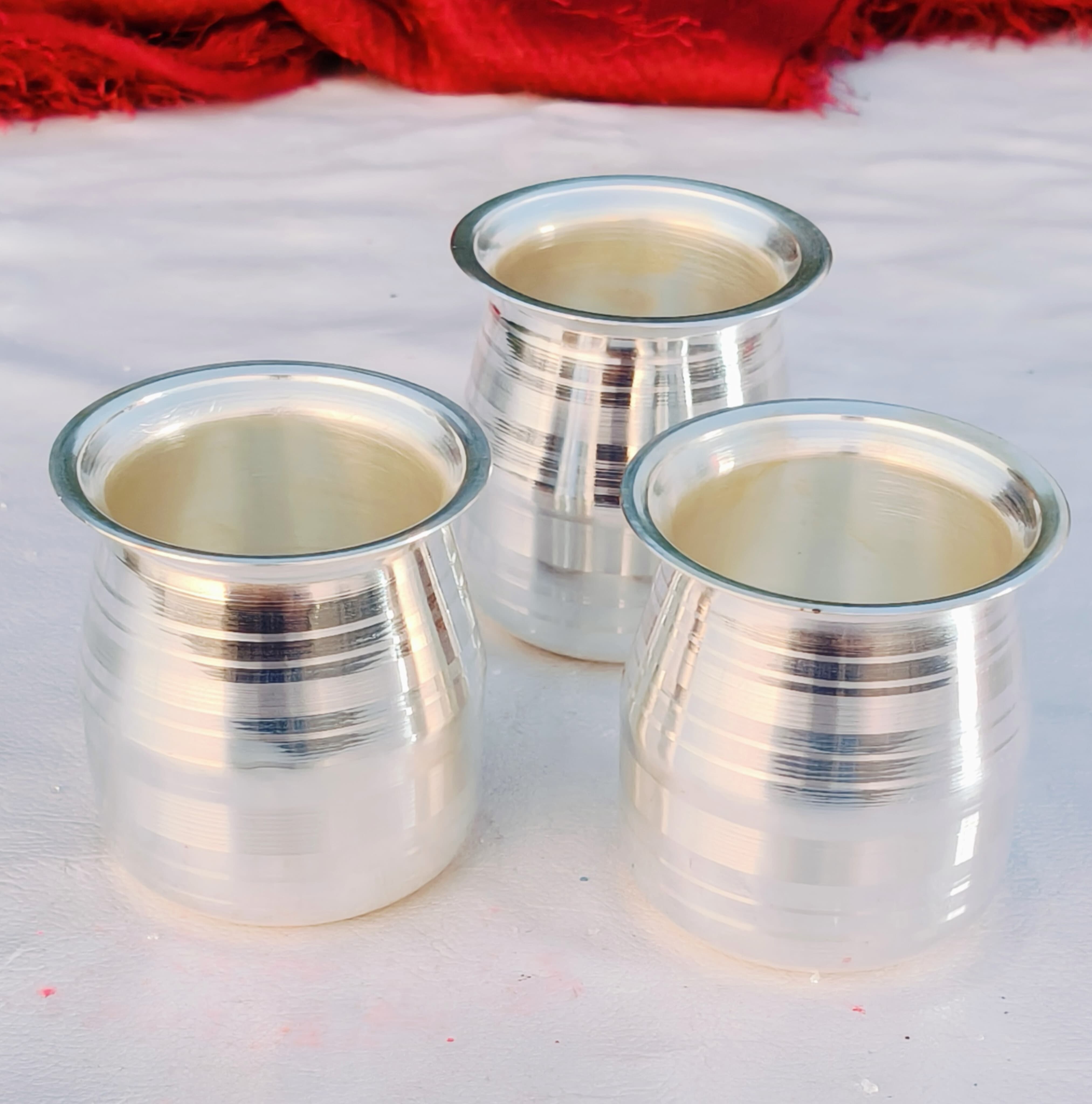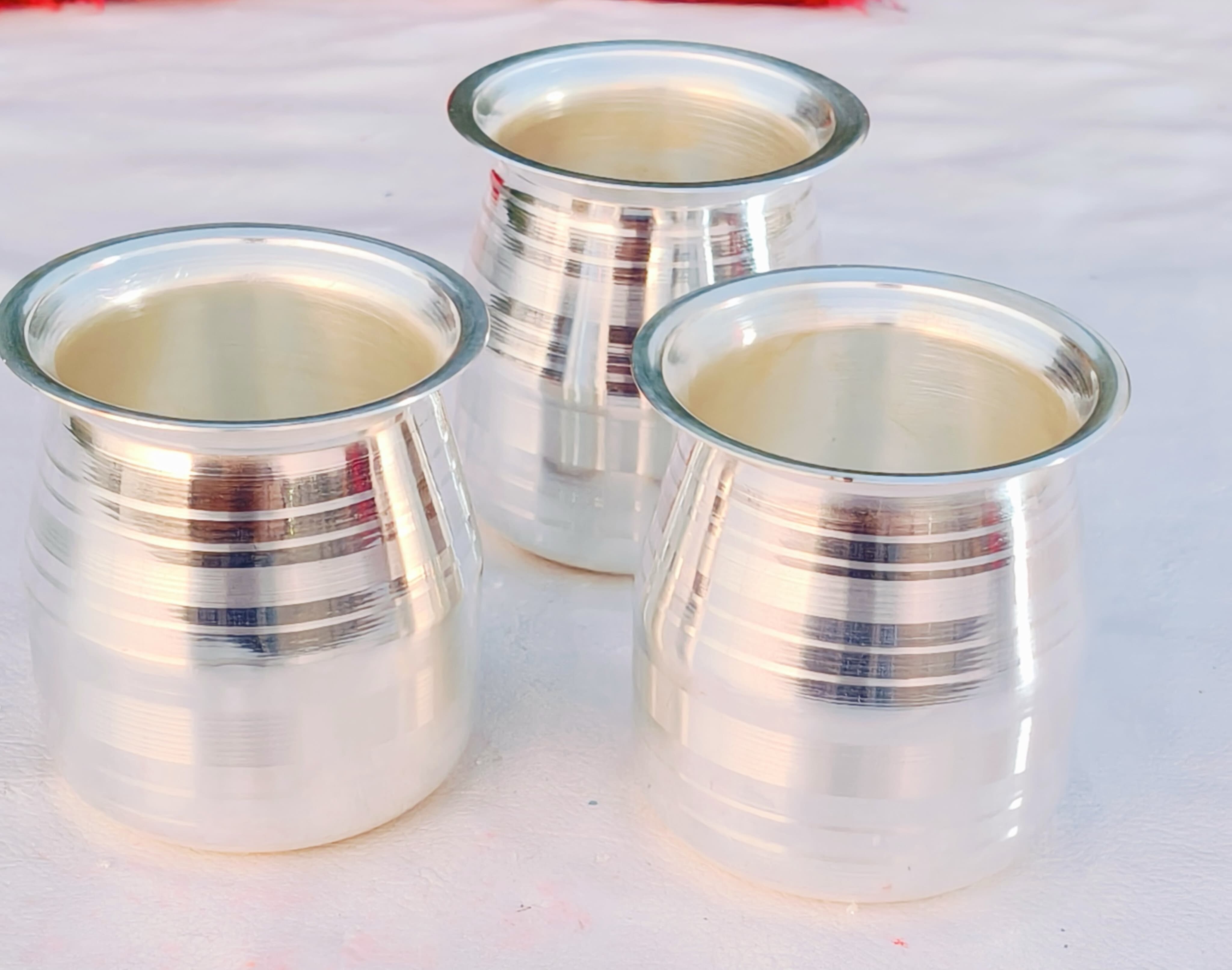 The flat surface design provides excellent stability, ensuring it can be placed securely on any surface. Its washable and reusable nature makes it a long-lasting addition to your pooja collection. With a compact size of 3 inches in height, this Marwadi-style Loti (also known as Kalashi or Karwa) is ideal for holding water, milk, or sacred liquids during rituals, abhishekam, and religious offerings.