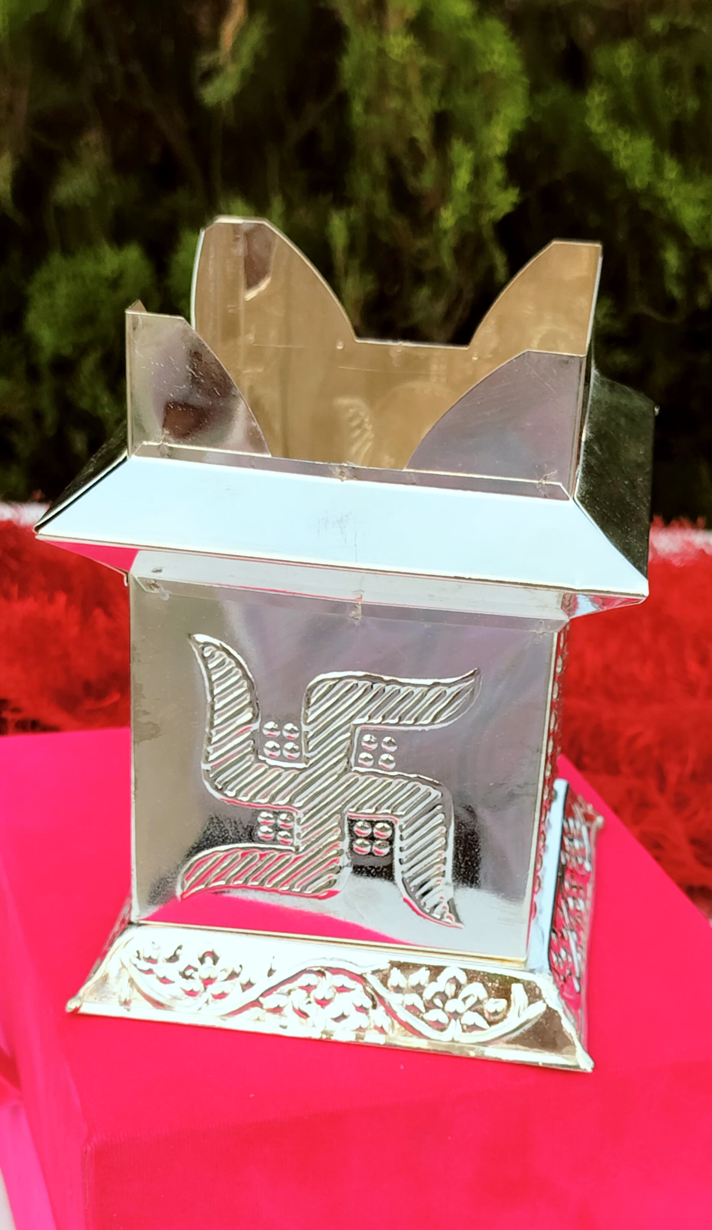 The German Silver Tulsi Pot (GRP2GSPD.2900.GS66) is a beautifully crafted pooja essential, designed to hold the sacred Tulsi plant ☘️, which is revered in Indian tradition as a symbol of purity, health, and prosperity. Perfect for auspicious occasions and festivals, this pot combines spiritual significance with elegant craftsmanship.