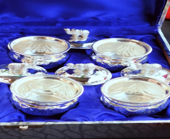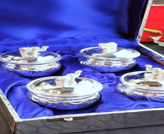 German Silver 4 Handi Shape Dryfruit Bowl with Elephant Design Lid GRP2GSPD.3400.GS68