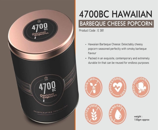 E381 – 4700BC Hawaiian Barbeque Cheese Popcorn | Tin Packing | 150gm approx