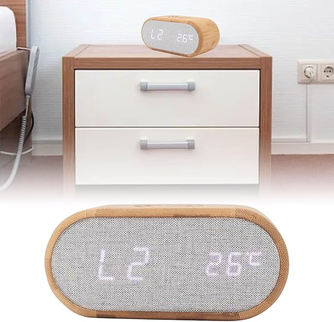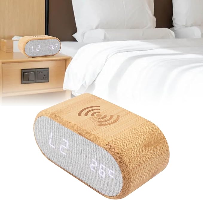 Upgrade your desk or bedside with the Wooden Alarm Clock with USB & Wireless Charging. This multifunctional digital clock not only displays time clearly on its LED screen but also doubles as a convenient charging station for your devices. With both USB and wireless charging options, it offers modern functionality in a stylish wooden design.
