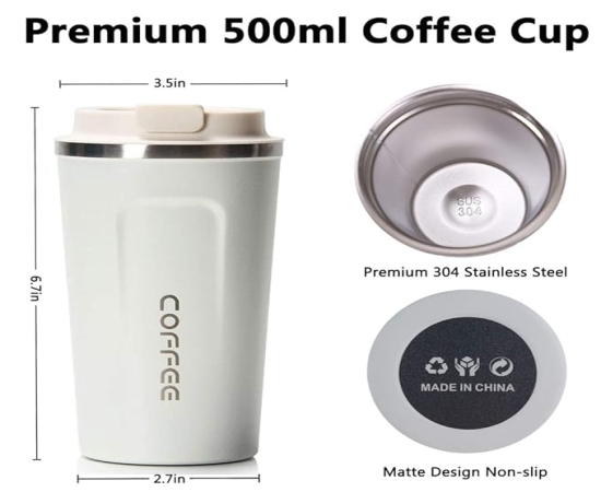 Enjoy your beverages at the perfect temperature with this 500ml stainless steel double-walled vacuum insulated mug. Built with advanced insulation, it keeps drinks hot or cold for hours, making it ideal for office, travel, gym, or outdoor use. The durable stainless steel body is rust-resistant and reusable, offering a sustainable choice for everyday hydration.
