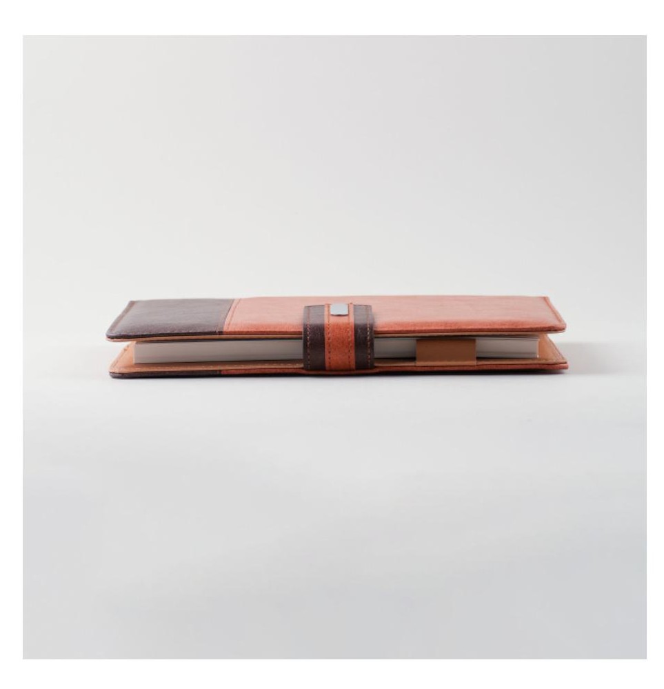 Interior: Includes slots for documents, cards, a pen holder, and a refillable notebook