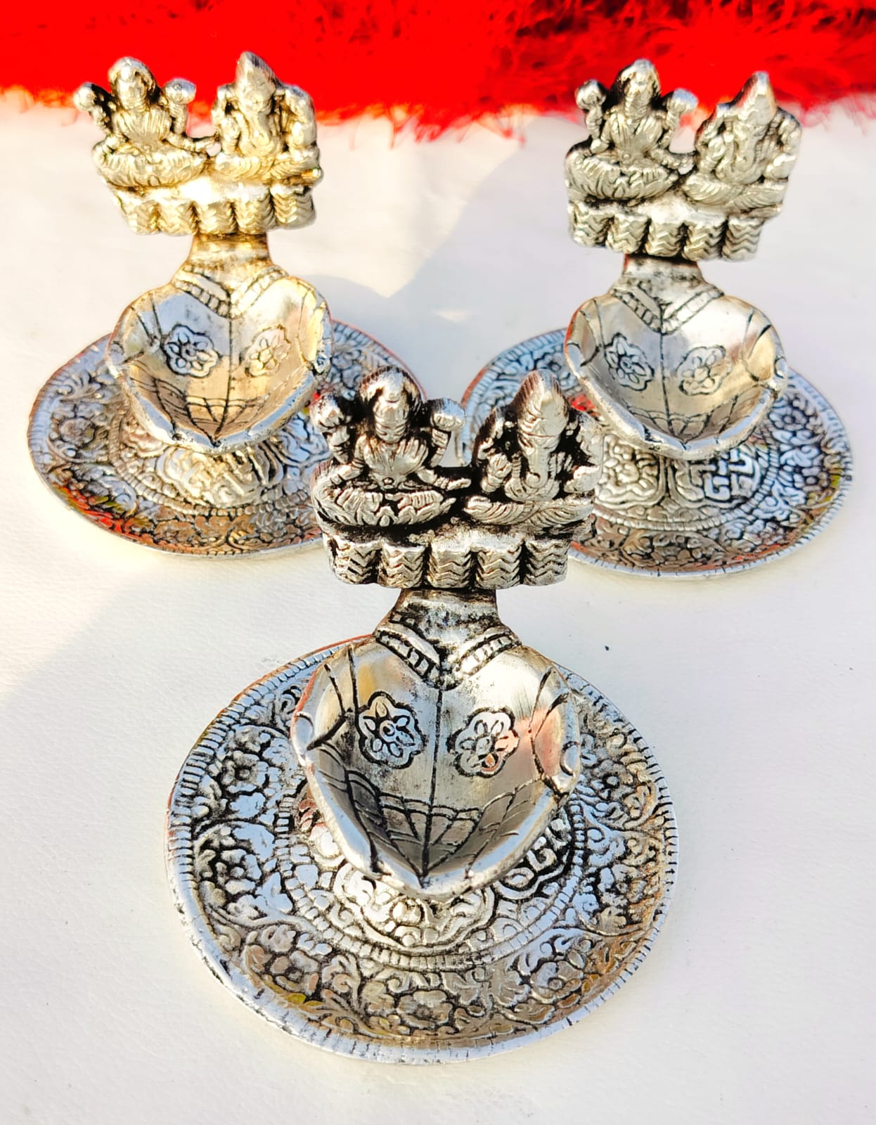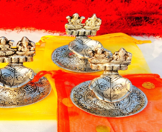 Bring divine blessings and positive energy into your home with this Antique Laxmi Ganesh Diya. Crafted in a traditional design with an antique finish, this diya features Goddess Lakshmi (symbol of wealth and prosperity) and Lord Ganesha (symbol of wisdom and success) together, making it perfect for pooja, Diwali celebrations, weddings, and gifting. Highlights: Antique finish brass-style diya with detailed craftsmanship Ideal for home temple, office desk, or spiritual décor Perfect gift for housewarming, festivals, and corporate occasions Symbolizes prosperity, wisdom, and good fortune Antique Laxmi Ganesh Diya, Brass Diya for Pooja, Laxmi Ganesh Deepak, Diwali Decorative Diya, Pooja Mandir Decoration Items