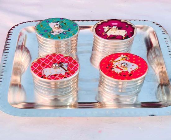 German Silver Mukhwas Dry Fruit 4 Dibbi With Square Tray Set GRP2GSPD.1100.GS10